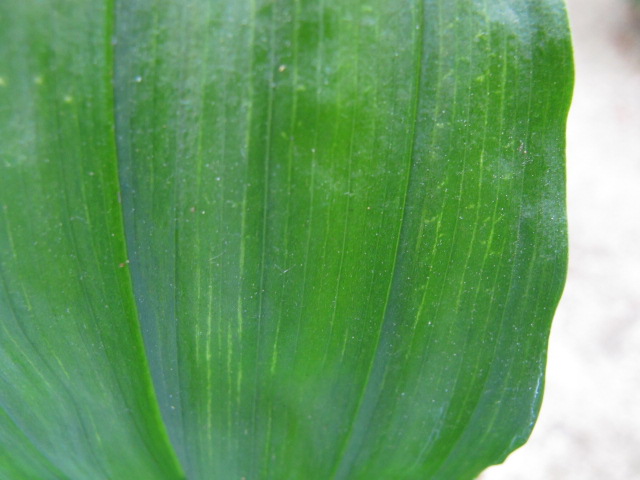 症状 葉脈が白く網目状になっている。前年秋購入した株の今年新葉