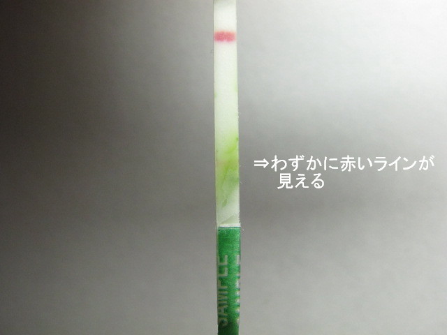 検定結果 上の赤線は関係ありませんが、その下の方に極薄い赤いラインが見えますので反応があるとして罹病と判定