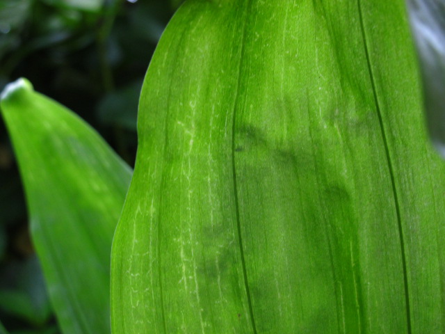 いやなものを見つけてしまいました。葉脈が網目状に白く抜けているところがあります。