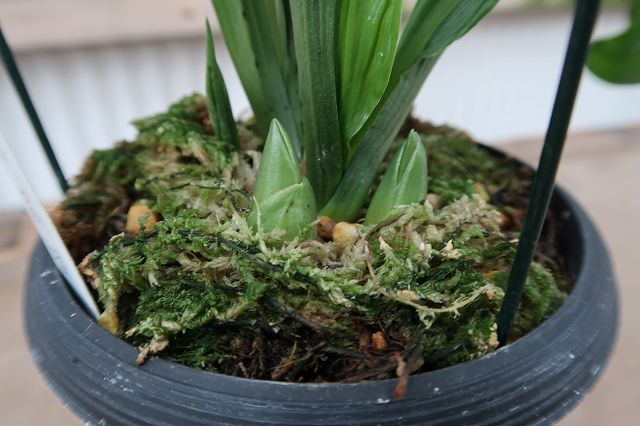 使用の2~3日前に潅水し、水を含ませて使用する。鉢上には水苔を敷く。