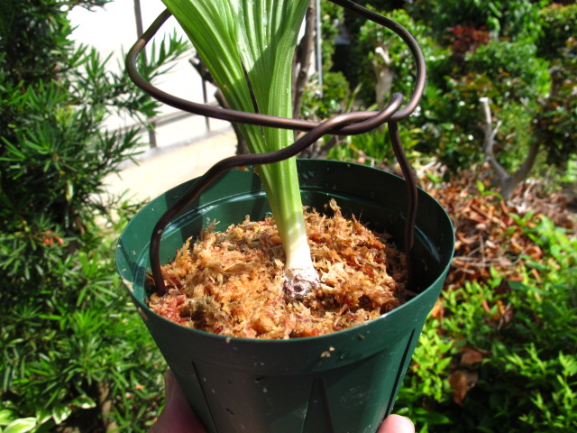 新木は根が少し伸びた程度なので水苔植えにしました。