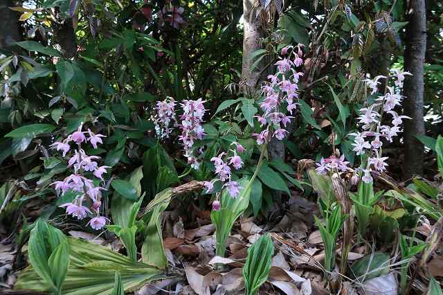 建物の北側に地植えしてあるエビネが咲いている。戦力外になったり、構想から外れた株を捨てるのは忍びないので植えているが、ほとんどウイルスにも罹らず、毎年健気に咲いている。