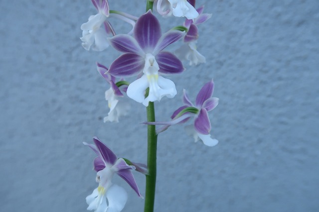 総じて葉が厚く硬く倍数体らしい姿の株が多かったですが、桃紫弁白舌花が多く、濃色は出なかったですね。香りもそれほど強くなかったようでした。