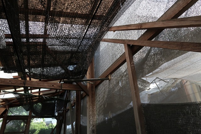 小屋内に張った寒冷紗  暗くなるのは仕方ない。2500~3500ルクスくらいかな。