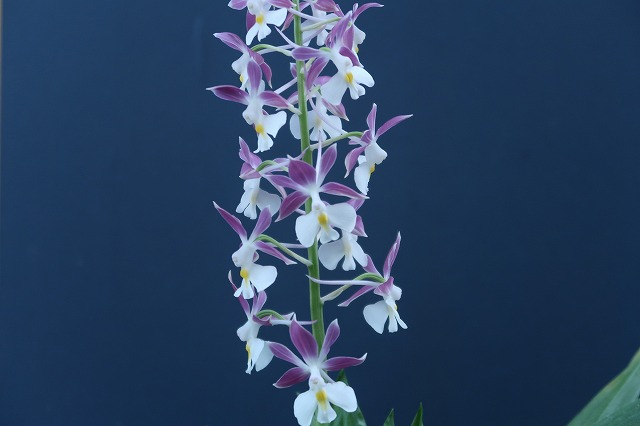 花色は濃紫だが舌の形態が少し違うようなのと葉は2枚だがやや薄い感じがして、昔からある株とは何となく印象の違いを感じつつ育てている。充実不足だけなのかもしれないが・・・?
