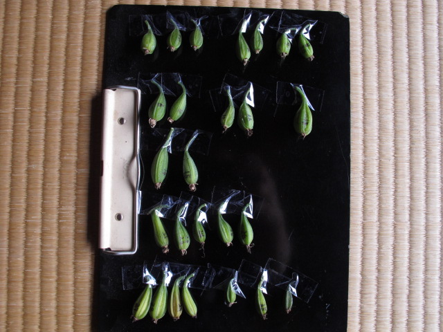すべて播くのではなく、稔性の確認のために交配したものもあります。割ってみて確認します。