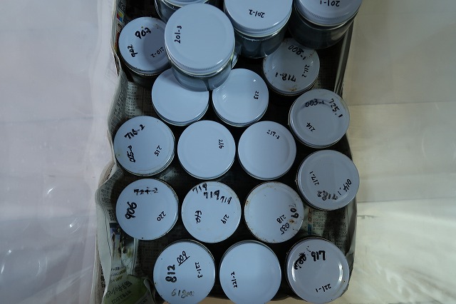 いつもの年と同じやり方です。作製済みの培養ビン30ビンほどに播きました。