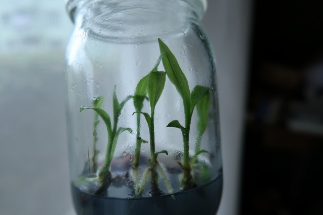 培養液を追加注入してもうひと頑張りのビン(ニオイ交配。播種後2年)。来春植え出し予定。