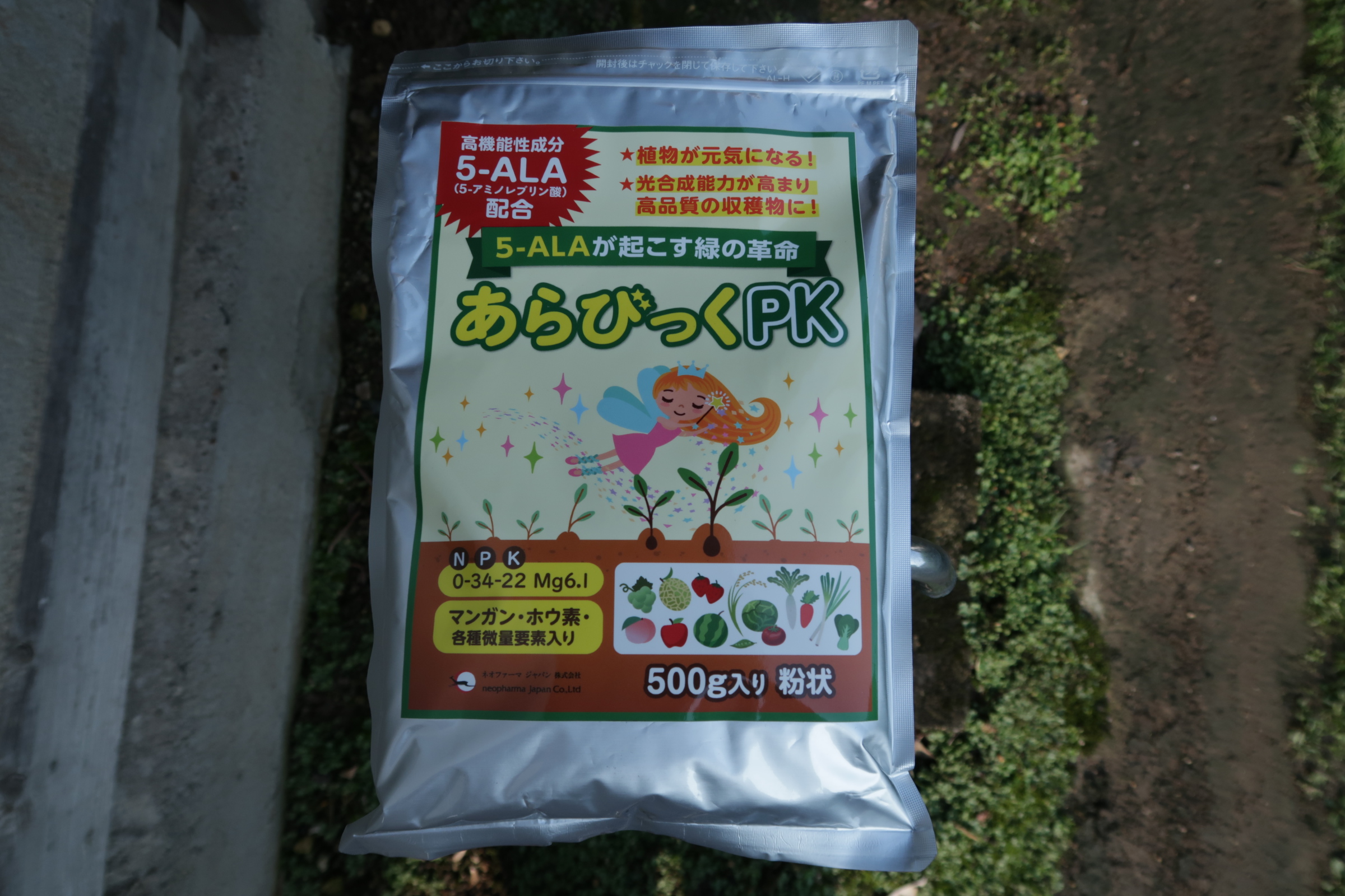 新しい肥料を見つけたのでちょっと高いが買ってみた。あらびっくPK(あらビックリ?)。