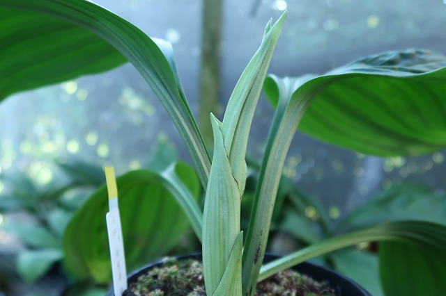 交配種ニオイ 高温のせいか伸びてしまった新芽。小苗も新芽が展葉しているものがいくつもある。