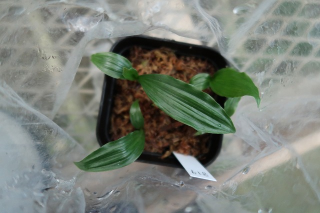 5月に植え出したニオイ極小苗。ビニル袋内で何とか夏を越して新葉が出てきたが先が長いなあ。