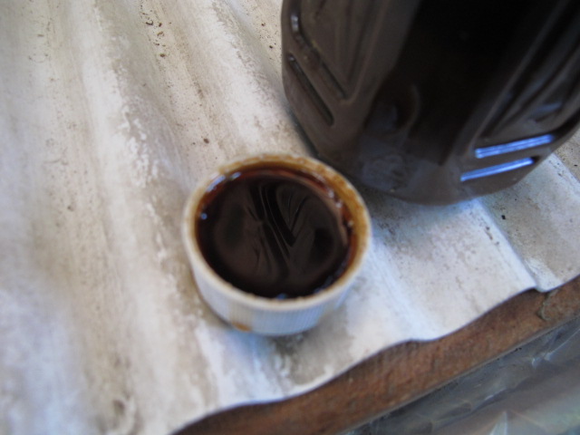 いただいてペットボトルに小分けしていましたがこれが最後です。途中でいくらかうすめたかもしれません。下の方には沈殿物がたまっており、上澄みの液は色は濃いが意外とさらっとしています。