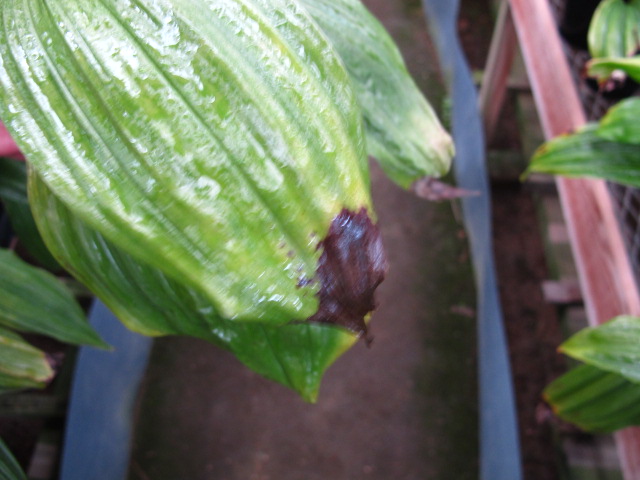 ニオイエビネ「虞美人」 葉の周辺が黄化