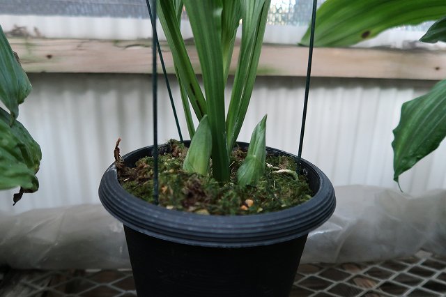 ニオイ自然種 御蔵島産無銘純白花。30年近く作っていて気難しく長い間停滞していたが、ここ数年、勢いが出てきて今年はこれまでで一番大きな新芽を出している。W花芽でないことを祈る。