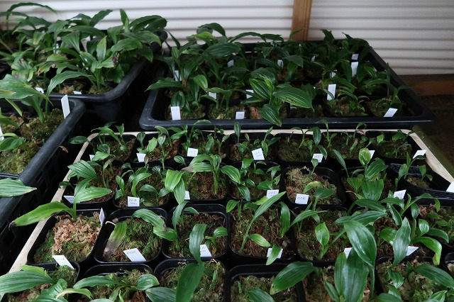 冬越しのため、棚下収納しているニオイ系交配の小苗たち。