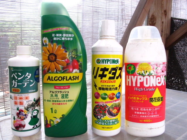 アルゴフラッシュ:従来のハイポネックス青に代えて今年試している肥料。オリゴ糖入り。