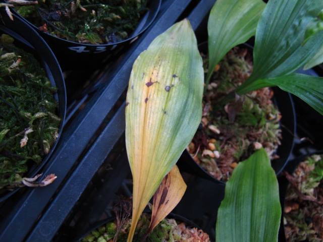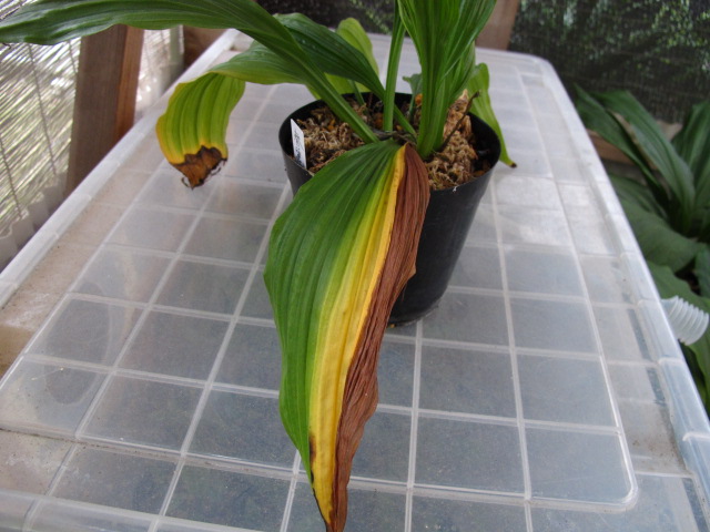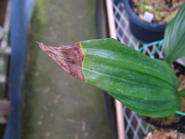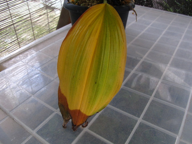 ・葉が半分だけ枯れる⇒葉元、バルブの一部に腐れがあるかも(異常なしも多い)