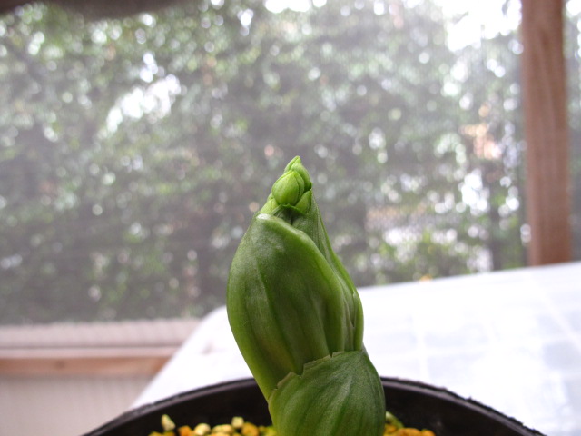 先日いただいたエビネが早くも蕾を出していました。ちょっと早すぎますね。