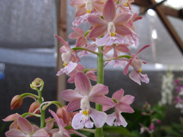 自然種のサツマやジエビネなども咲いています。満開近しですね。