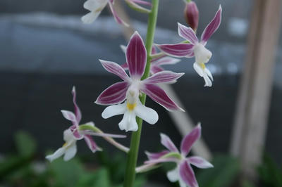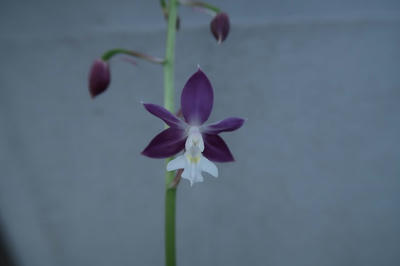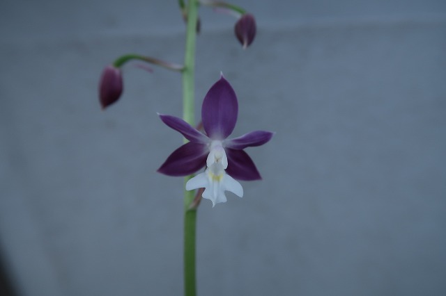 遅くに出た花茎に咲いた不完全花で花弁がない。色彩がちょっと変わった濃色花で香はやや弱め?