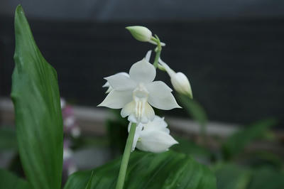 両品種の中間的な花で純白のように見える。キリシマエビネの貴重な遺伝子保存を目的に交配。