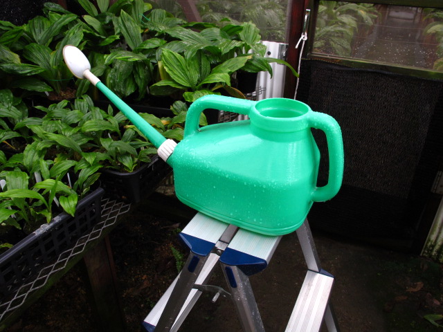 大雨の水を利用して如雨露に集め、エビネたちに自然の味を思い出させてやりたくなりました。