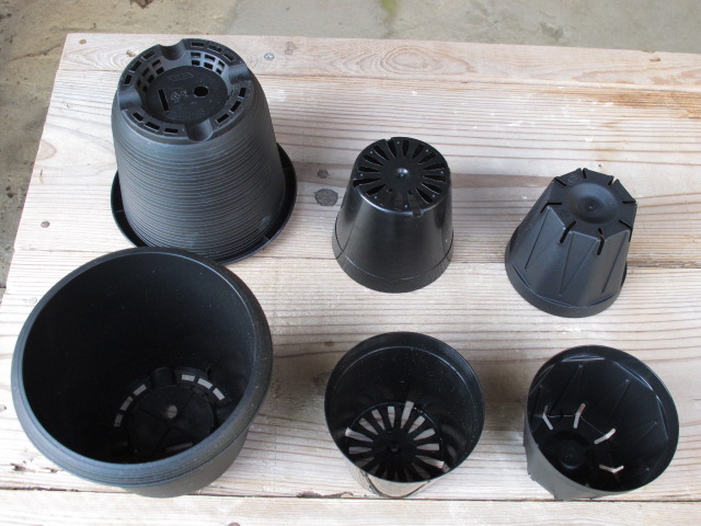 ものなら何でもよいと思います。小苗は硬質ポリポットを使用しています。スリット鉢も試