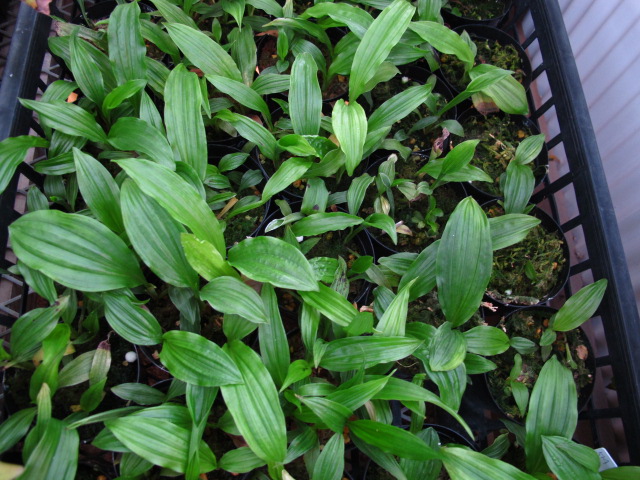 自家交配して育成しているニオイ系(ニオイ系コオズも含まれています)の苗です。コオズ系はこれらよりずっと生育のよいものが多いですが、ニオイ系はこれで植え出して2~3年経っています。ビン苗をうまく作れないので(技術不足と手抜き)、初期の生長がよくありませんが、大きくなり始めると意外に順調に伸びることが多いようです。そこに至るまでにだいぶ淘汰されてしまいますけどね。ただ一気に開花まで生育できず、途中でいじけると10年選手の道(あるいはひっそりリタイア)を歩むものが出てきます。