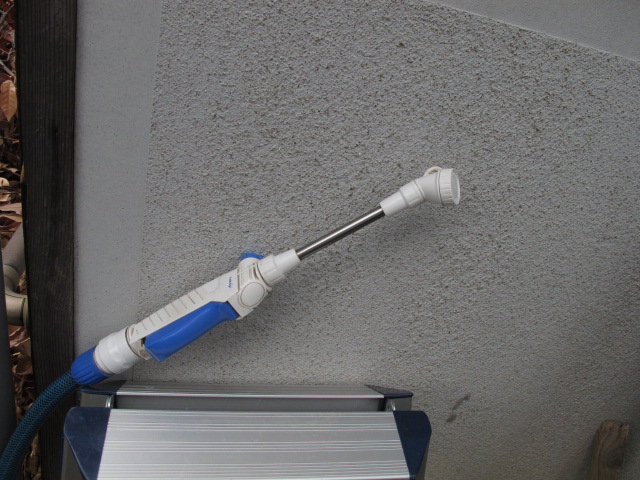 蓮口をホースにつけて潅水しますが、大きな蓮口は不必要に水が飛び散るので小型の口で柄のついたもの(タカギ製:画像)を使用しています。