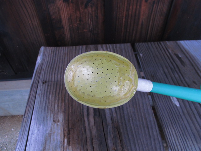 液肥などは普通の如雨露(6リットル)を使いますが、これも蓮口が大きいので接着剤で蓮口の穴を周囲部分半分くらいふさいで使用しています。