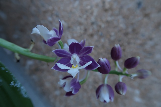 自家交配のニオイエビネ初花 蕾の発達不良(早朝の日陰でちょっと濃く撮れている)でやや小輪