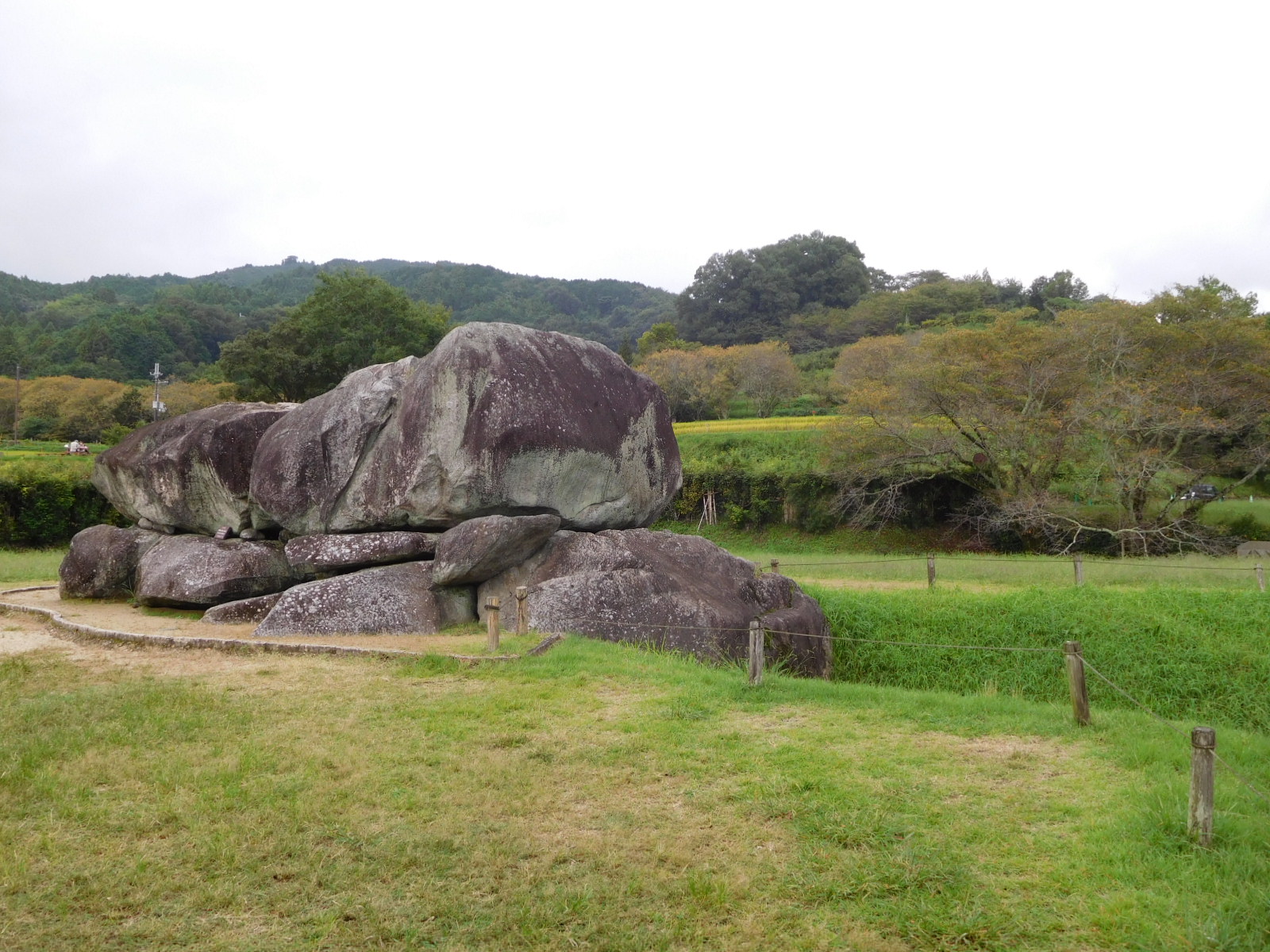 蘇我馬子(入鹿の祖父)の墓といわれる。石材は近くで産出した花崗岩。かつては墳丘の下にあったそうですが、古い昔(室町の頃?)、覆土を農耕用に持って行かれて露出したそうです。