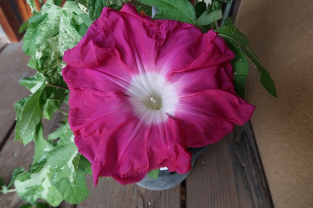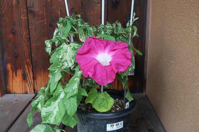 まだ成長途中だが急につぼみが大きくなってきて今朝咲いた。