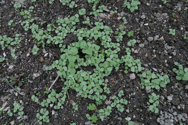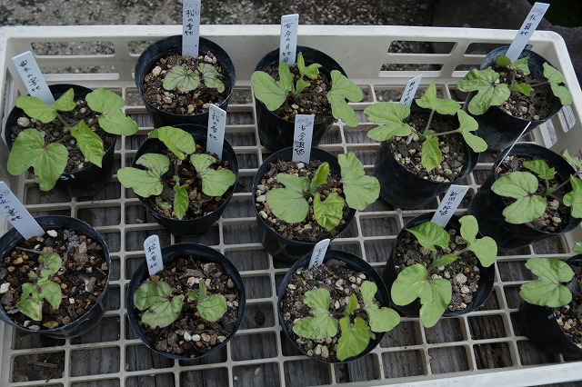 発芽が遅かった品種や、播きなおした品種などは、まだ双葉状態のものもあります。