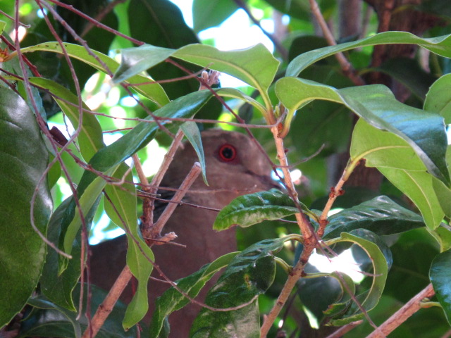キンモクセイの木の茂みの中に、キジバトが巣を作っていました。