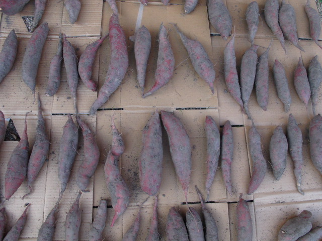 干芋用のベニハヤト、焼芋用にべにはるかと高系14号です。