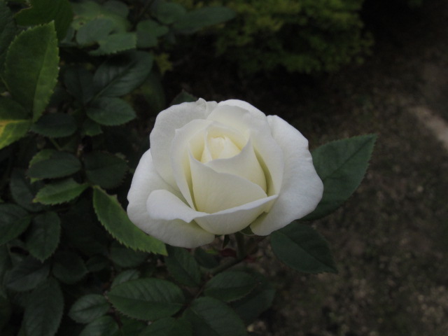 昨年いただいた白のミニバラが咲いています。