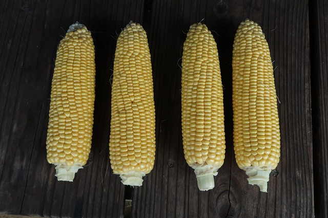 孫たちがやってきてトウモロコシを収穫。穂の先まで実が入ってて上出来。