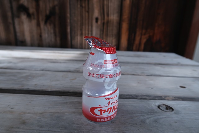 方法は簡単で、誘引剤をヤクルトを飲んだ後のプラ容器に入れて、出没しそうなところに置くだけだが、注意することはヤクルトを飲むときにフタの一部を付けたままていねいにはがして雨除けのカサにすることと、風で飛ばないように地面や棚に固定すること。しばらく使ったらそのまま捨てる。この時期は雨が多いのでフタが役に立つ。