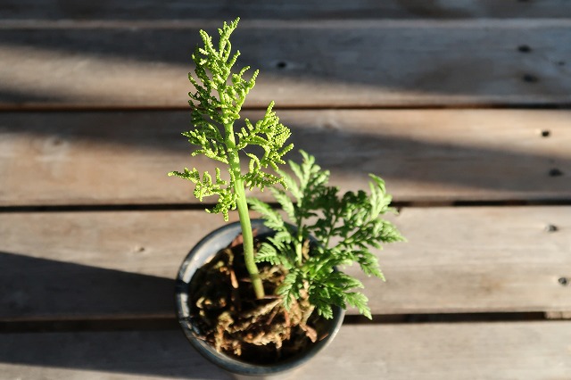 昨年いただいたフユノハナワラビ。 だいぶ伸びてきました。おもしろい姿ですね。