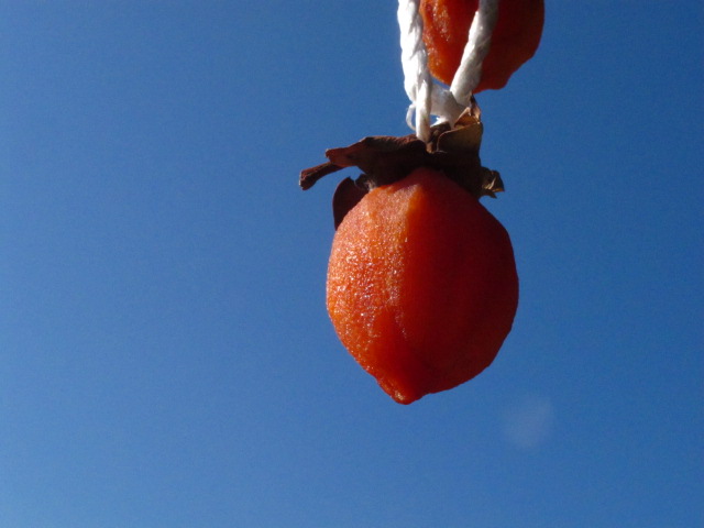 干柿が良い色になってきました。カビも来ないし成功かな?
