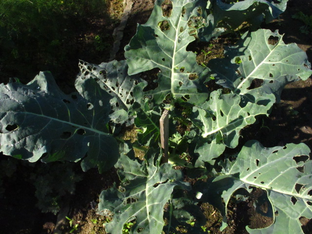 今年の秋はいつまでも気温が高かったので、ブロッコリーはアオムシに穴だらけにされましたが、ようやく落ち着いてきました。追肥を少しやりました。