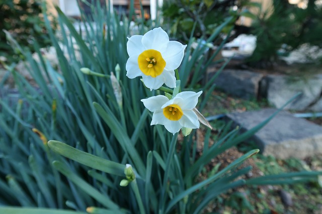 早くも日本水仙が咲き出している。丈夫で殖えすぎている。よい香り…