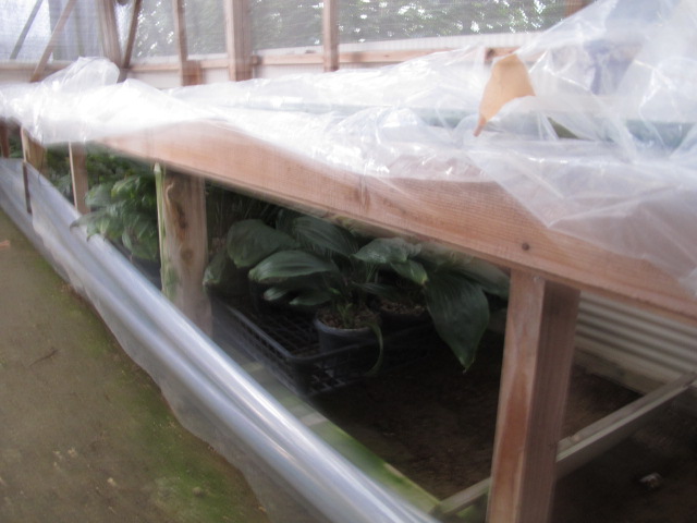 倉庫内はエビネ、春蘭、寒蘭の越冬場所にもなっています。ちょっと湿度が低い。