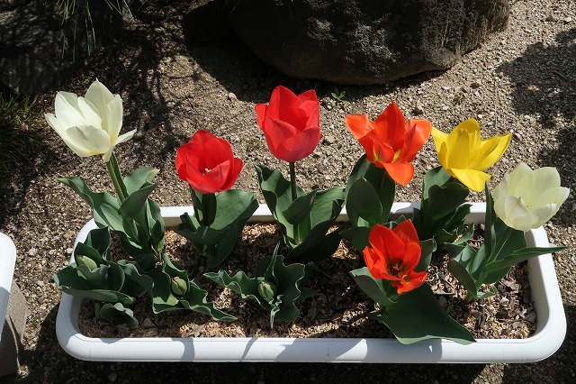 昨秋、孫と一緒に植えたチューリップが満開になってきている。