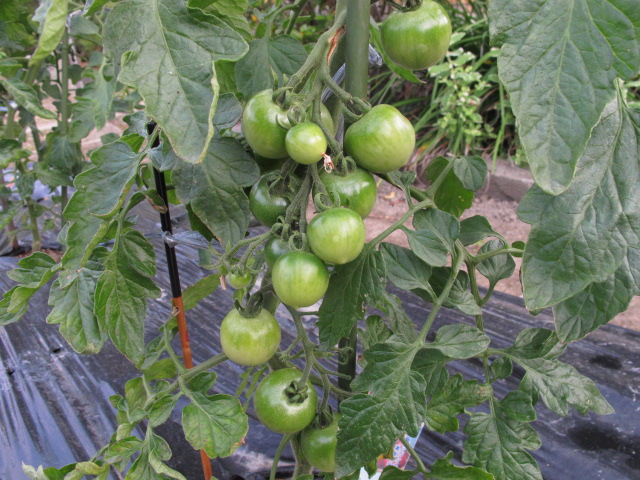 中玉トマトの一段花房の実が大きくなってきました。収穫まであと20日くらいかなあ。