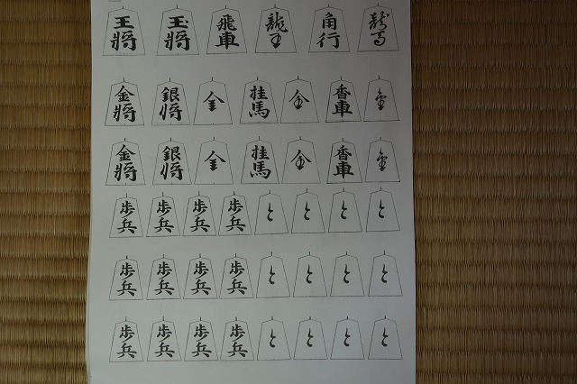今回用に字母(駒の書体の紙)を改訂しました。古い書体を基本に我流でアレンジしたものです。前回は少し字が細かったので、太目にしました。