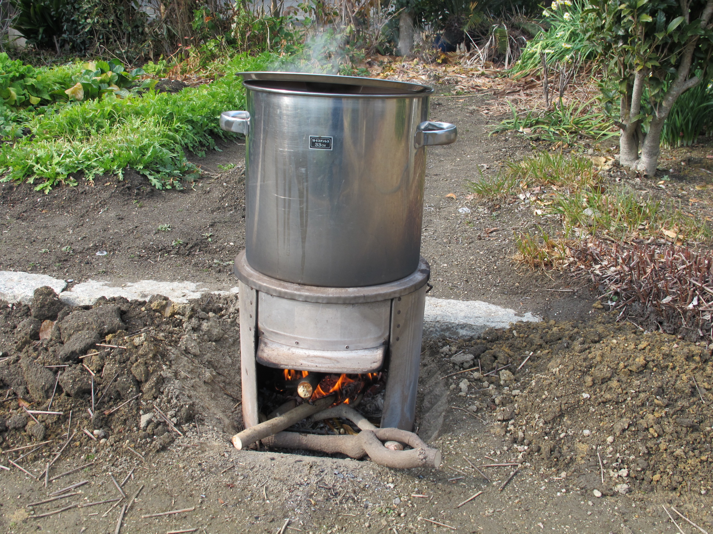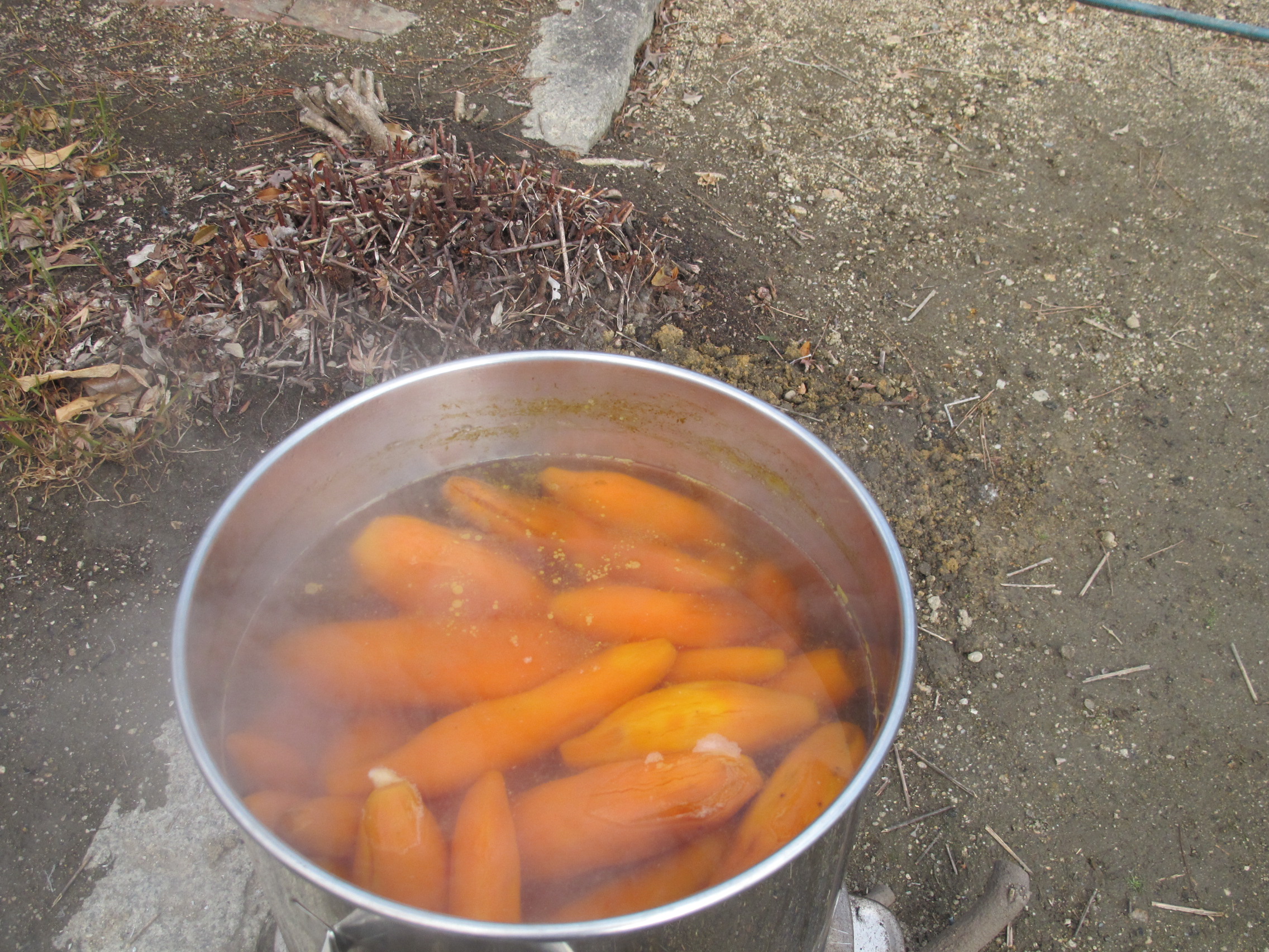 寸胴に水と芋だけ入れて、薪を焚いて6時間、コトコト煮ます。