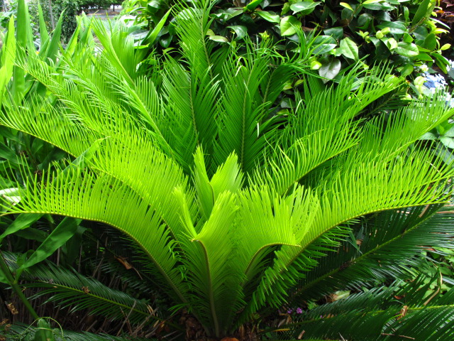 なぜか以前からソテツの鉢植えがあって何もしないのに元気です。