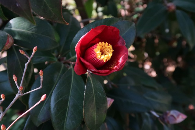 ツバキも咲いてきた。蜜が多いので鳥がやってきて花を無茶苦茶にしてしまう。